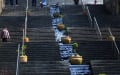 菜の花の先には花で彩られた巨大な鳥の絵が。これはスケールが大きいなあ。