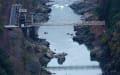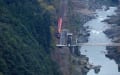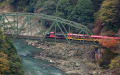トンネルを抜けてトロッコが橋梁の上に出てきた。